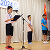 接着,由六名代表发表《宣言文》。杨简宁(中国 四年级)说:“吹割瀑布、薰衣草公园、采摘葡萄、温泉。这次宝贵经验促使我再次认识到,这些都是水的馈赠。”三谷爽佑(冈山县 六年级)说:“在上毛之乡博物馆,我学习到日本和大陆、半岛间悠久的历史关系。”金河珉(韩国 五年级)说:“开始时我们用智能手机的翻译软件、英语、肢体语言来交流,最后我们只要打个手势就能理解彼此。”涉千寻(岛根县 四年级)说:“制作图画书时我们一起出主意、编故事,在关键场合,我也很注意说话用词。”金始弦(韩国 六年级)说:“特技表演大会上掌声和喝彩声连连,饱含重视彼此、关心彼此的心意。”侯孝恒(中国 四年级)说:“我发现三个国家的孩子间共通点比不同点更多,每个国家都交到了好朋友。”