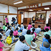 子どもたちは少林山の達磨寺にも立ち寄り、縁起だるまの絵付けも体験しました。達磨寺は、達磨大師の教えを受け継ぐ寺です。群馬県の高崎市は日本最大のだるまの生産地で、まゆ毛は「鶴」、鼻や口ひげは「鶴と亀」を表し、「縁起が良い」とされ、「縁起だるま」と呼ばれています。副住職の一真さんから達磨寺の歴史やだるまの置物について説明を聞き、だるまの絵付けを体験しました。だるまの絵付けを一番の楽しみにしていた松田瑞紀さん(石川県、6年)は「短い時間でしたが、お手本を見て素早く顔を描き、われながらうまくできました。」と喜んでいました。中国の楊一諾(ヤン・イーヌオ)さん(5年)は「中国にはだるまに似た人気のおもちゃがあります。日本のだるまもてっきりおもちゃだと思っていました。」と話し、文化の違いに驚いていました。
