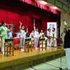 旅館に到着 でんでこ座三国太鼓が演舞を披露